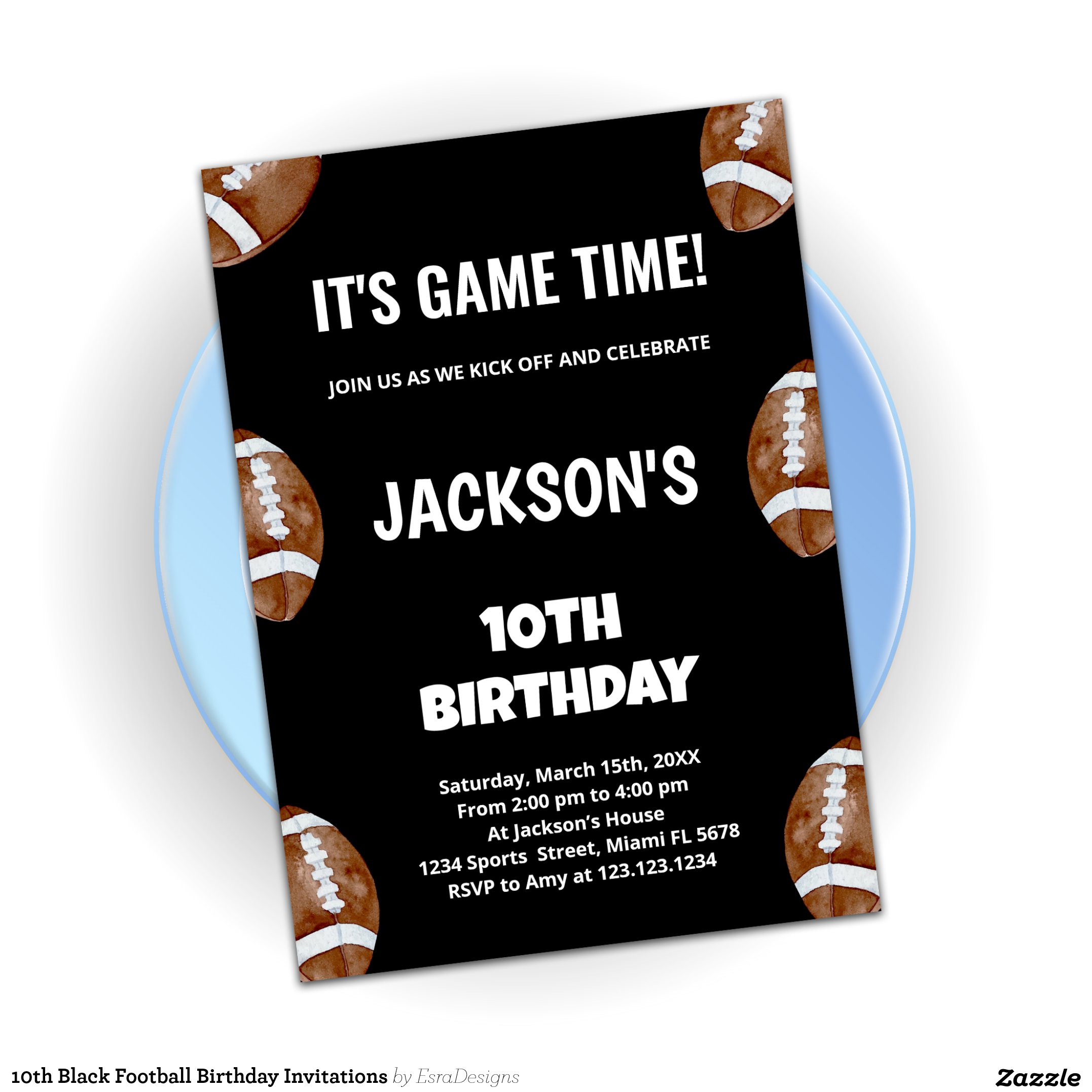 10th Black Football Birthday Invitations