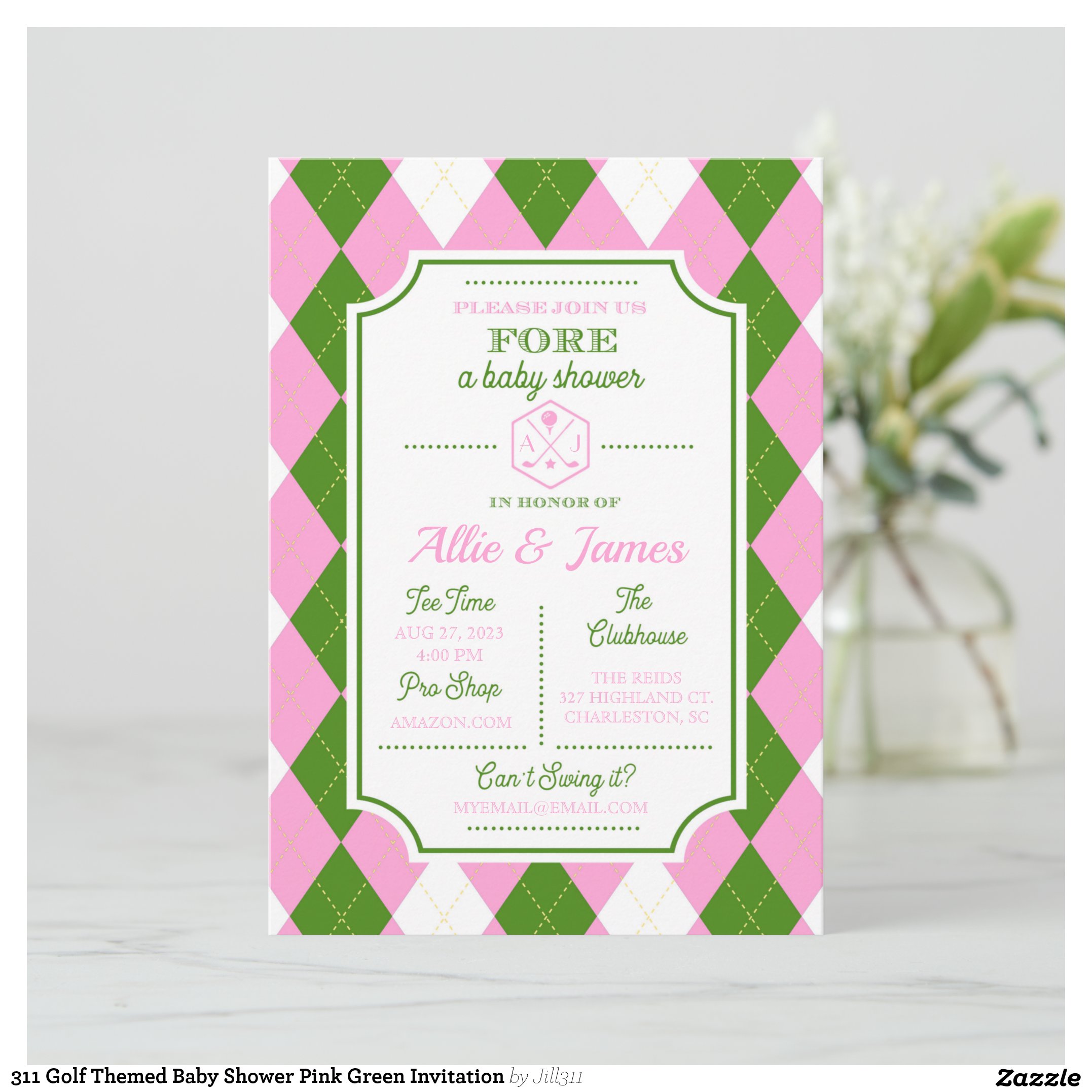 Be the first to review “311 Golf Themed Baby Shower Pink Green Invitation”
