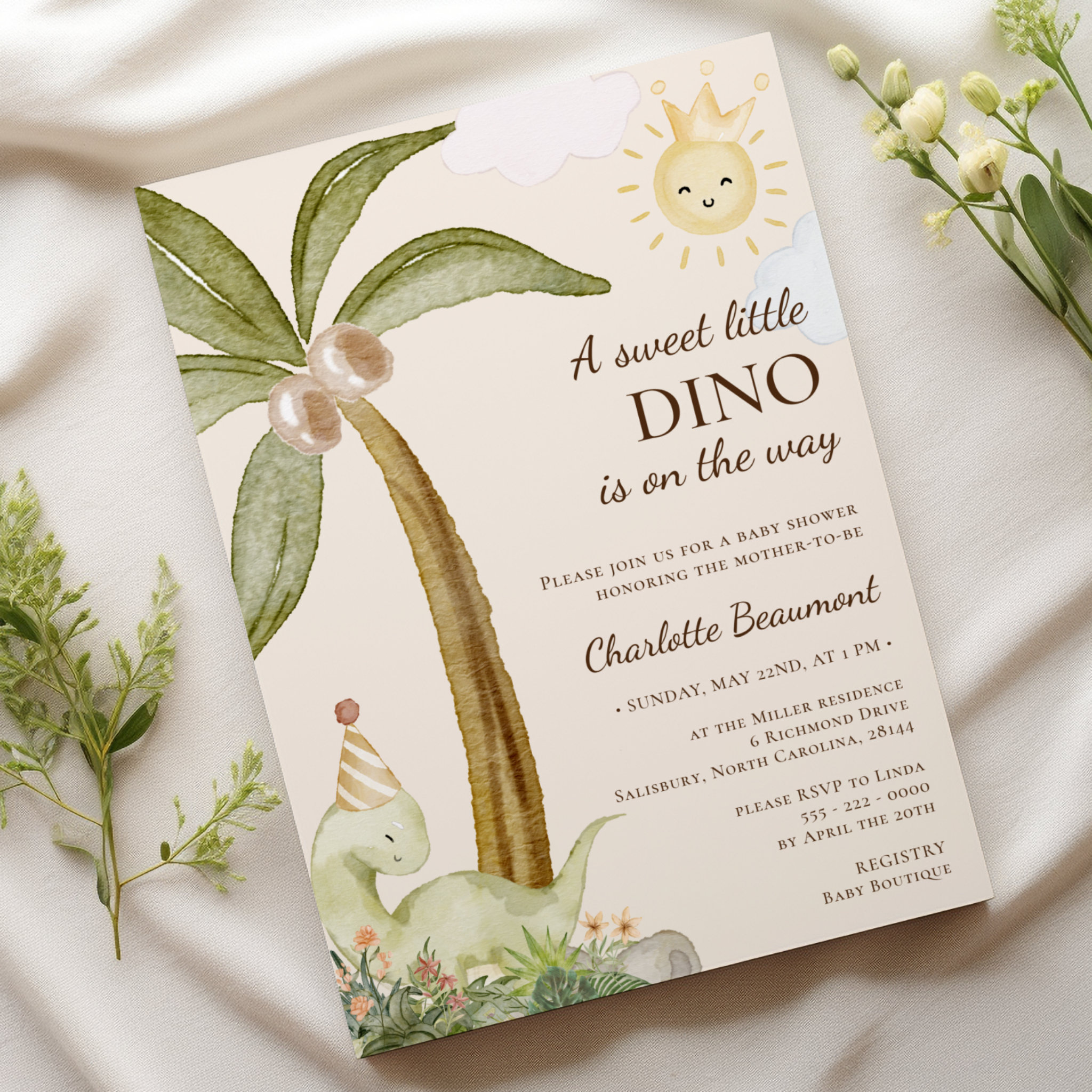 Be the first to review “Boho Dinosaur Beige Sweet Little Baby Shower Invitation”