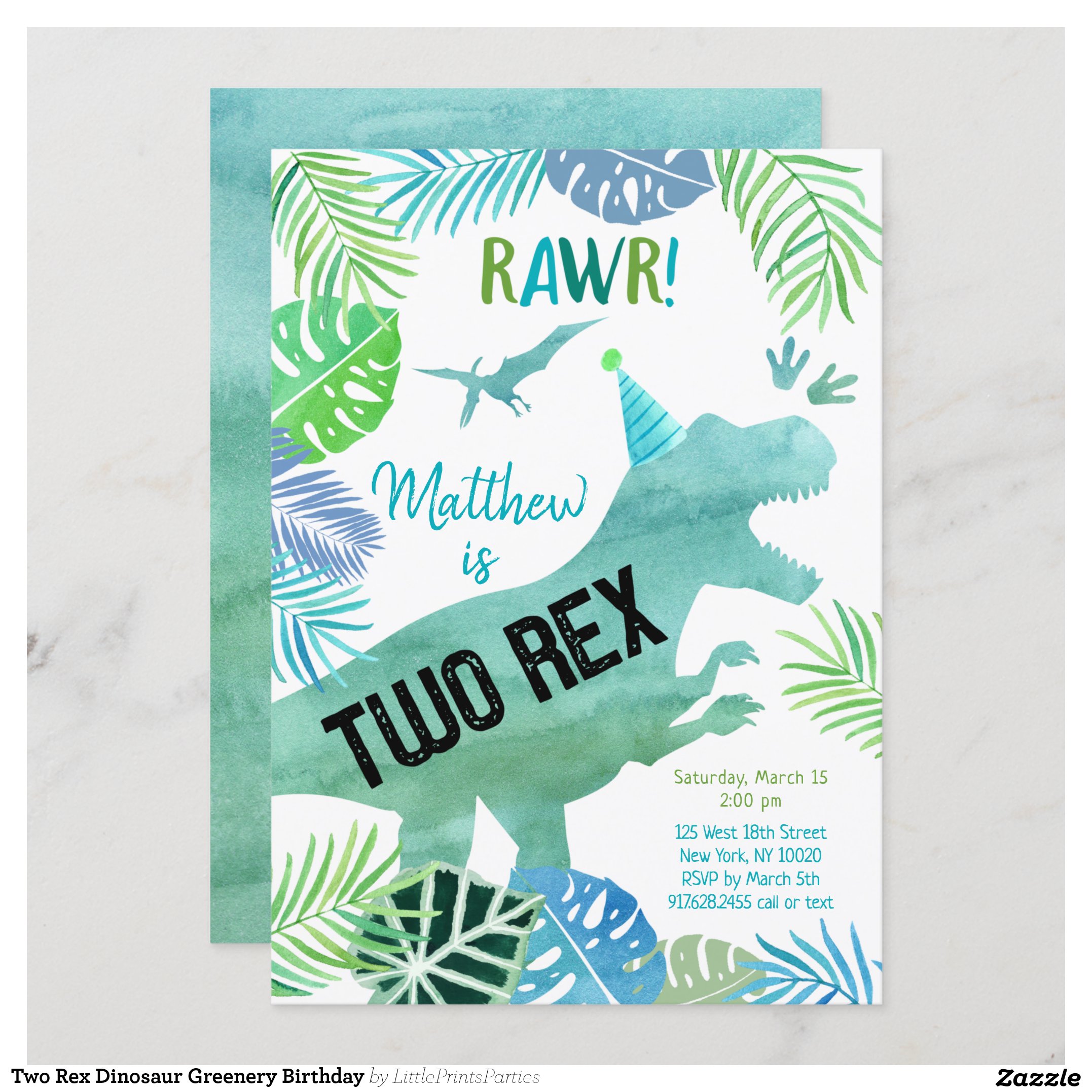 Be the first to review “Two Rex Dinosaur Greenery Birthday Invitation”