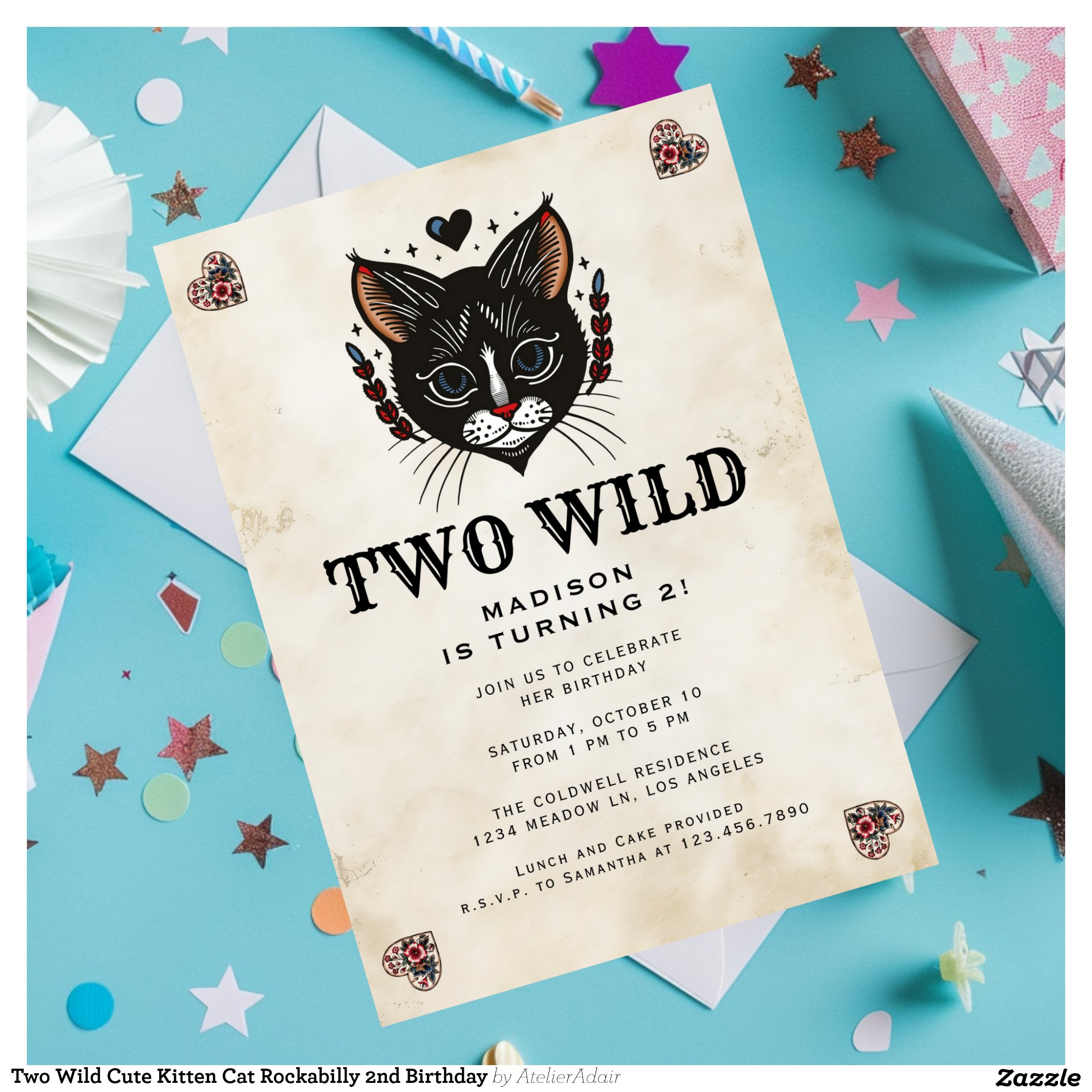 Be the first to review “Two Wild Cute Kitten Cat Rockabilly 2nd Birthday Invitation”