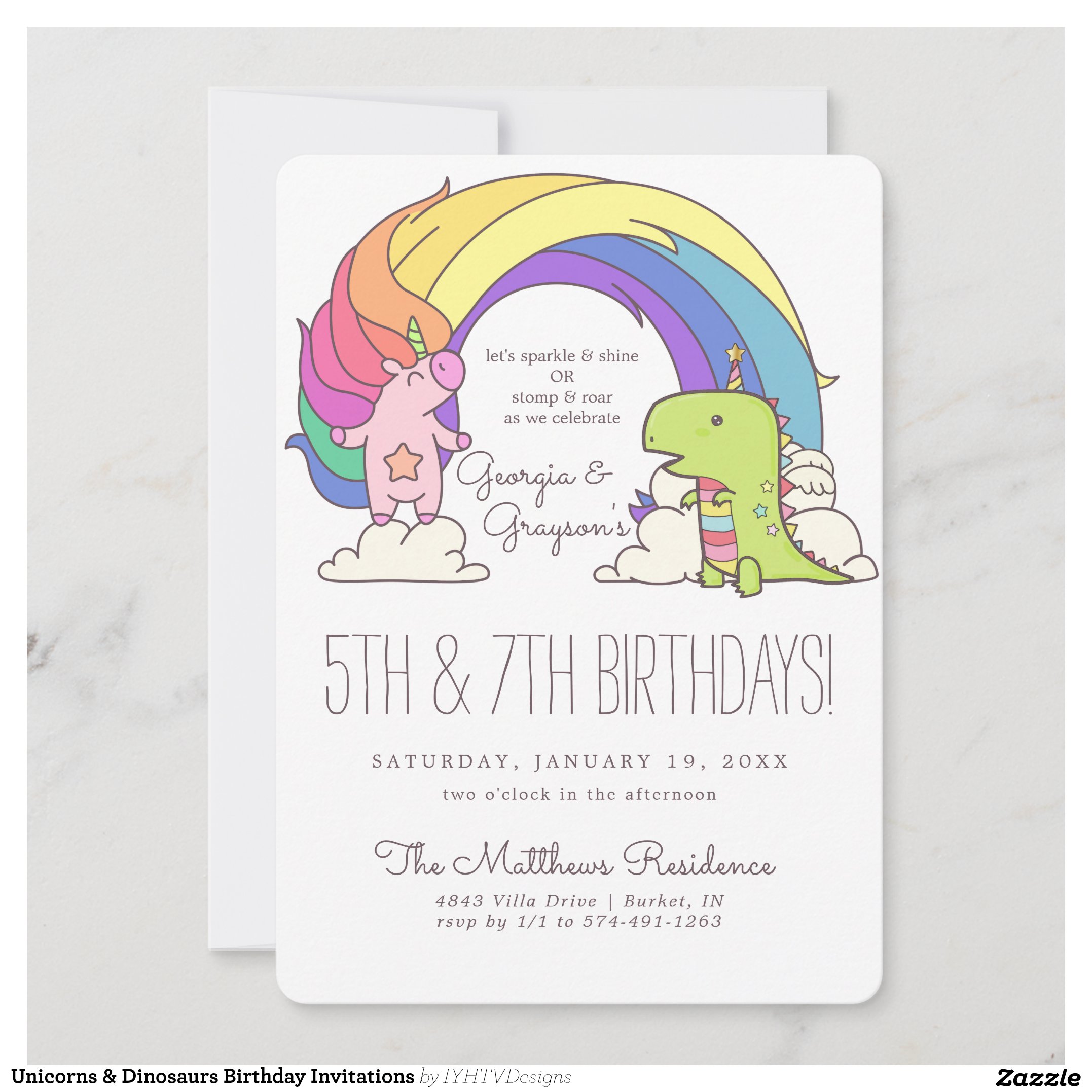Unicorns & Dinosaurs Birthday Invitations