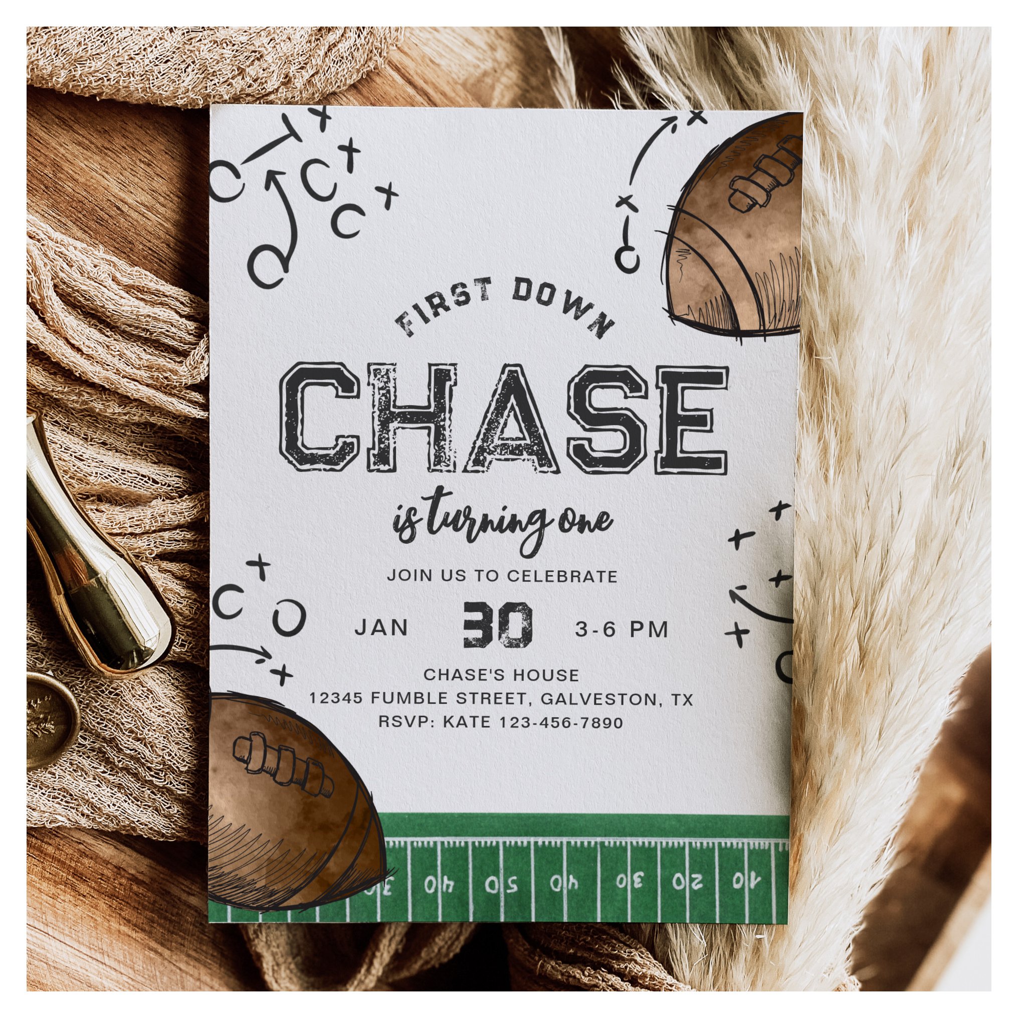 Be the first to review “Watercolor First Down Football Birthday Invitation”