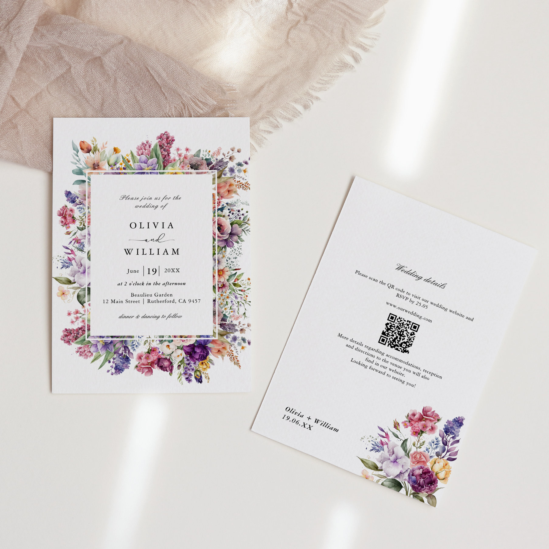 Wedding Floral Garden QR Code All In One Invitation