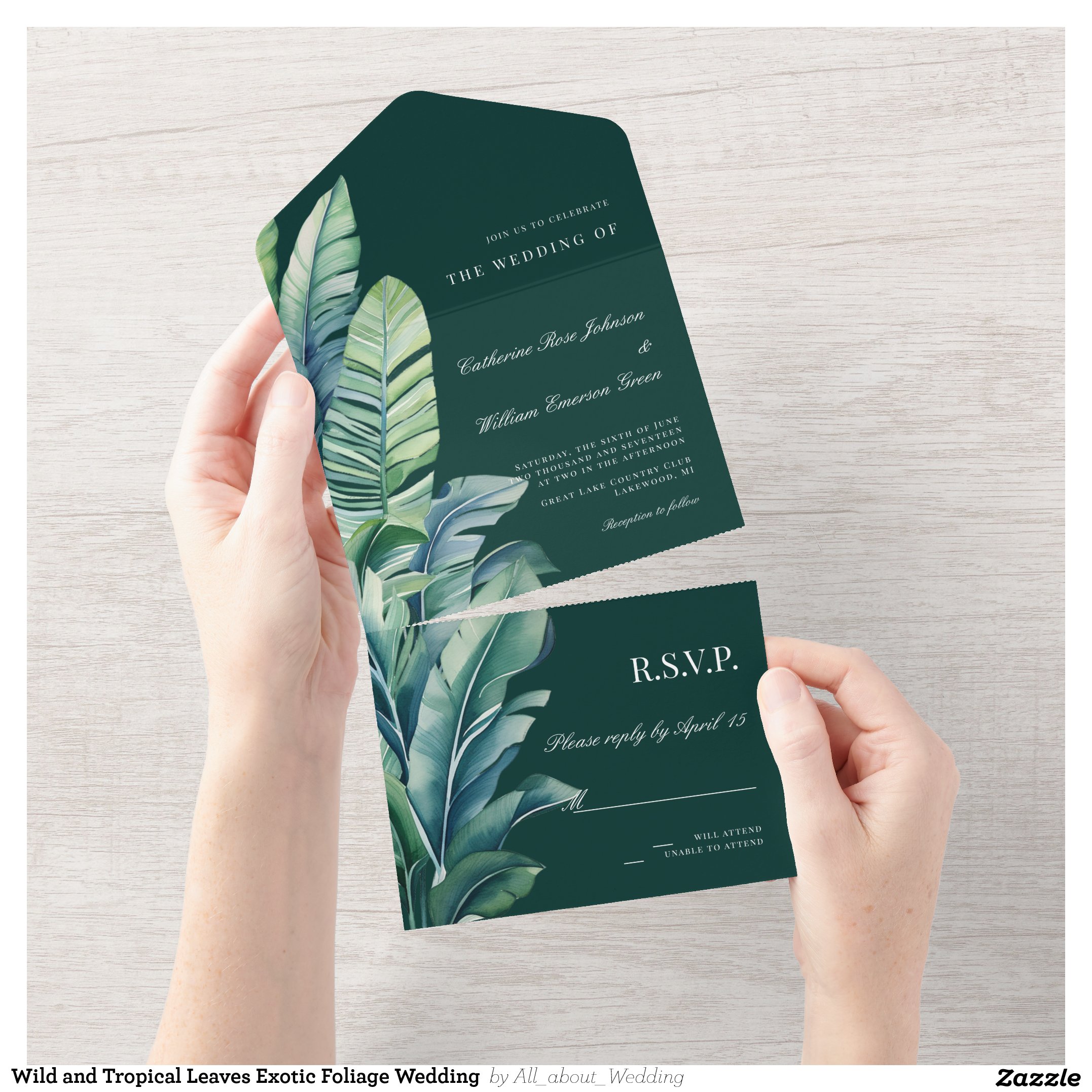 Wild and Tropical Leaves Exotic Foliage Wedding All In One Invitation